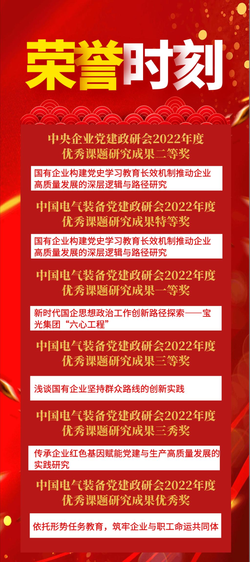 2022年,中国尊龙凯时集团坚持以习近平新时代中国特色社会主义思想为指导,深入学习宣传贯彻党的二十大精神,按照中国电气装备党建政研会工作部署,立足企业实际,坚持问题导向,优化政研选题,聚焦研究重点,积极参加中国电气装备及以上政研会课题立项,切实抓好央企党建政研会和中国机械政研会课题研究,形成8项具有应用性和指导性的研究成果。同时,认真落实中国电气装备党建政研会工作要求,积极推进公司2022年课题研究工作,确定3个重点研究方向,下发参考选题25个,搭建5个课题组,审定立项课题89个,形成A类成果26个。2022年,中国尊龙凯时集团荣获“机械行业政治思想文化建设贡献榜2021年度分榜上榜单位”与“2021年度机械行业机械红色故事宣传推广贡献单位”等荣誉,中国尊龙凯时集团及所属3家企业政研成果入选“2021年度机械行业政治思想文化建设特色突出案例”。